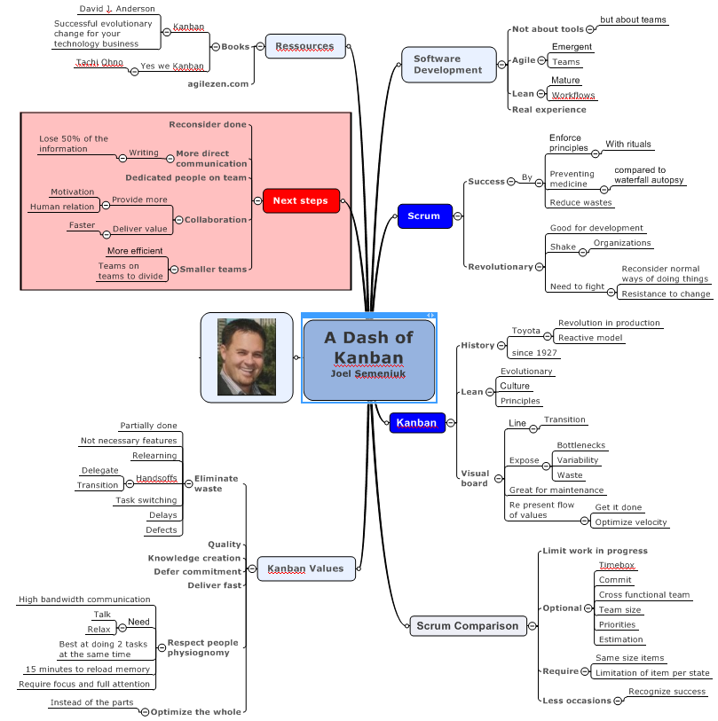 Here’s a mind map of the notes I took at Joel Semeniuk’s conference at devteach Montréal 2011. He his a Microsoft Regional President, MVP, CSM and CSP.